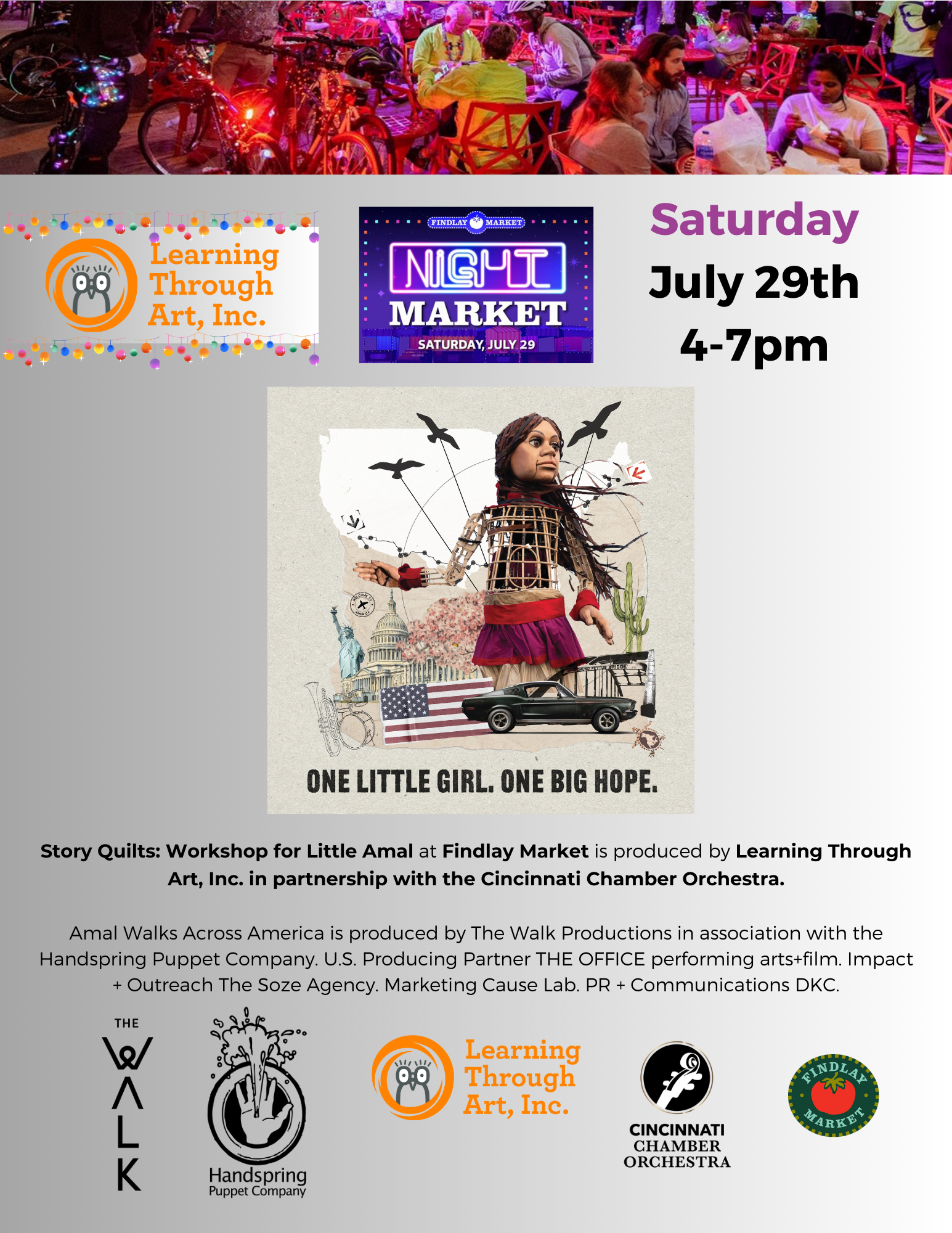#LTA #LearningThroughArt #StoryQuilts #LittleAmal #WalkWithAmal #CCO #FindlayMarket #LTAxFindlay #NightMarket #Cincinnati #Hope